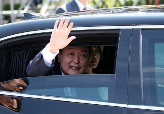 10日上午,尹錫悅乘國產防彈車,前往就職儀式現場。