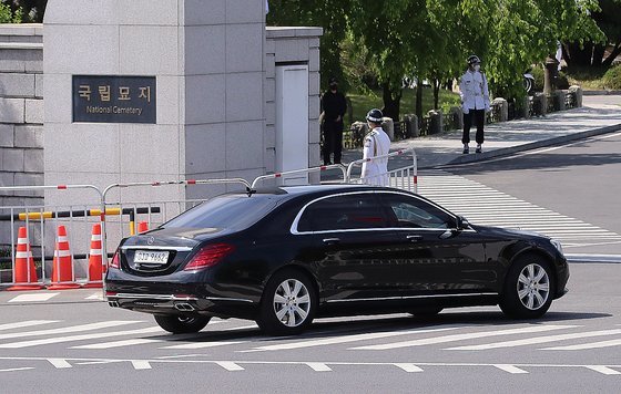 尹錫悅乘坐奔馳轎車前往國立顯忠院。
