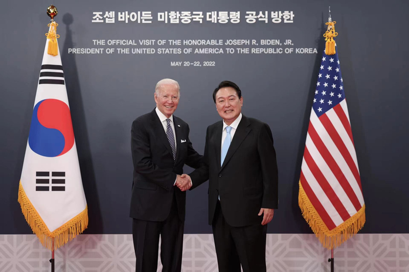 21日下午,拜登與尹錫悅在龍山總統府舉行了首腦會談。會后,兩國領導人共同會見記者并發表了韓美聯合宣言。當晚,尹錫悅為拜登在韓國中央博物館設宴,韓國十大企業集團掌門將悉數到場。22日,拜登將啟程赴日本。