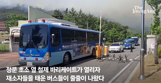 5月31日,韓國一所監獄因山火緊急轉移囚犯。(韓國《中央日報》)