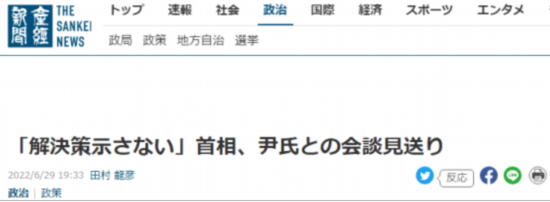 《產經新聞》:“(韓方)沒有提出解決方法”,日本首相擱置與尹錫悅的會談