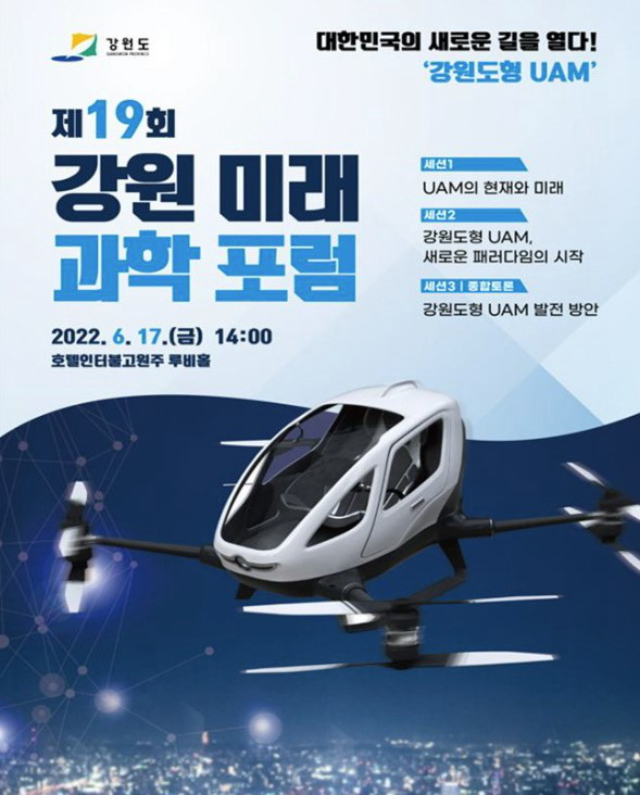 人民網江原道6月18日電 17日下午,第19屆江原未來科學論壇在江原道原州市舉辦。論壇主題為“江原道城市空中交通UAM(Urban Air Mobility)”,旨在展示韓國交通出行領域的全新未來!翱罩薪煌ā笔且环N未來全新的交通系統,有利于緩解城市中心交通堵塞問題。