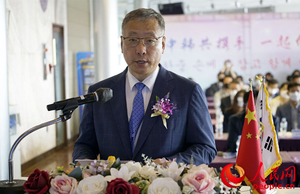 中國駐韓國大使館經商處谷金生公參致辭。人民網 曹翔宇攝
