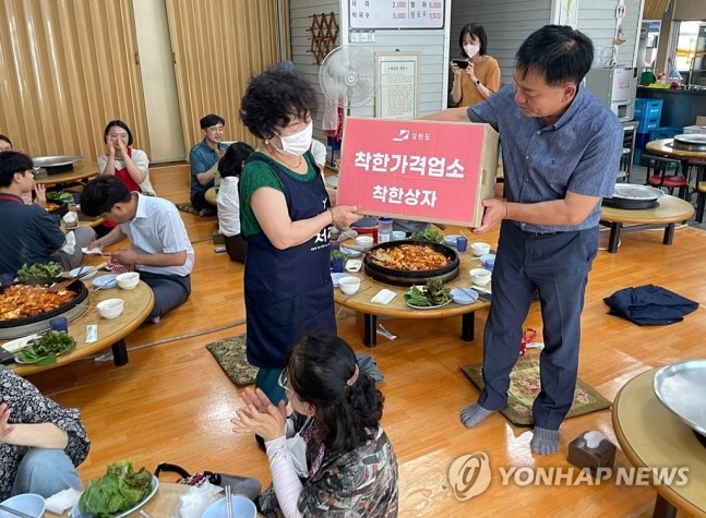 人民網首爾7月29日電 近日,江原道將每月最后一周星期三設定為“光顧實惠商家日”,旨在通過此方式讓地區民眾多多光顧一直以來以低廉價格造福于當地社會的商家。為此,江原道于7月26日在春川傳統市場附近舉行了相關宣傳活動,江原道和春川市公務員、物價監管人員等30余人參與了該活動。