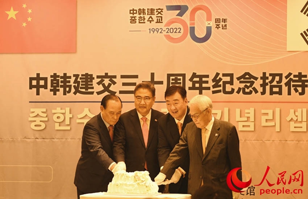紀念中韓建交30周年切蛋糕儀式。人民網 曹翔宇攝