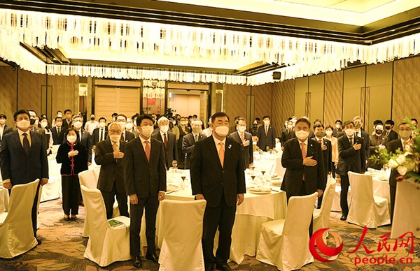 中韓關系未來發展委員會韓方委員長林采正、執行委員長洪鉉翼、21世紀韓中交流協會會長金漢圭、韓中友好協會會長辛正承,以及中韓關系未來發展委員會韓方委員、韓國友好團體人士應邀出席。招待會上演奏了中韓兩國國歌,嘉賓們共同切蛋糕祝賀,邢海明和樸振還分別致辭,表示將認真落實兩國元首重要指示,不忘建交初心,加強溝通合作,共同推動中韓關系在下一個30年不斷取得新的更大發展。