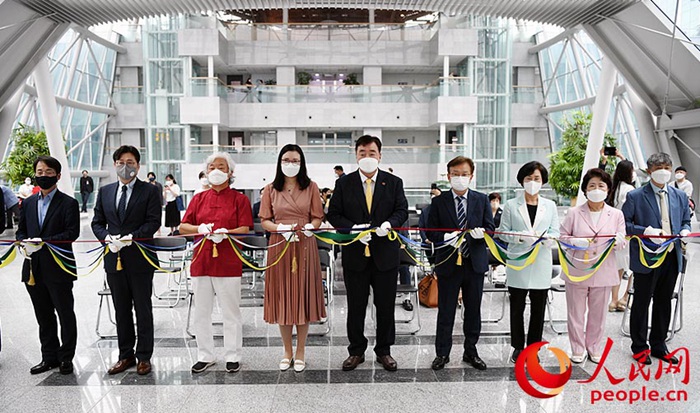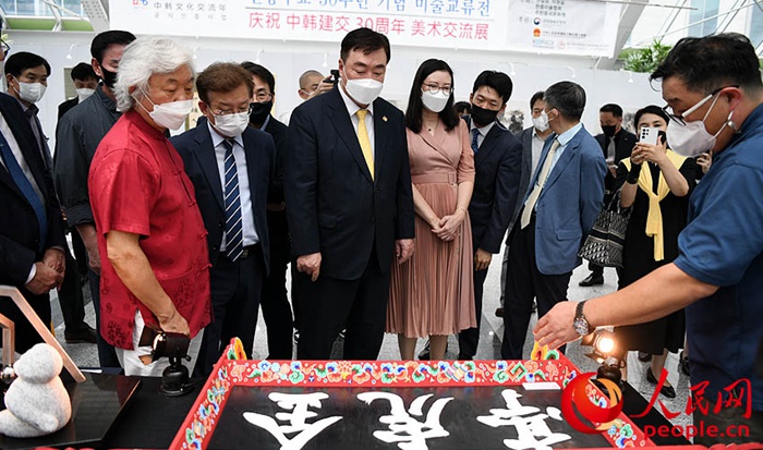 “慶祝中韓建交30周年美術交流展”開幕式剪彩儀式。人民網 裴埈基攝