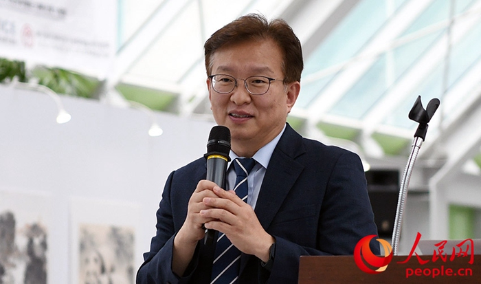 車鴻圭代表韓國藝術家致辭。他表示,希望更多的韓國藝術家通過展覽感知中國,為增進韓中美術藝術交流,促進兩國人文合作做出更大貢獻。