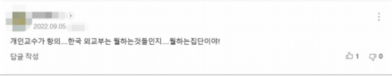 還有網友對韓國政府尚未就此事發聲表達不滿,寫道:“為什么只是韓國教授對此進行個人抗議……韓國外交部干嘛去了!”↓