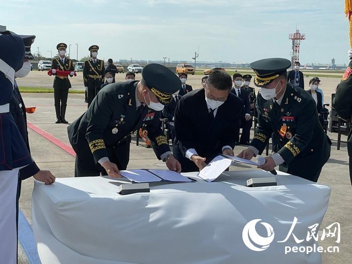 中韓雙方代表現場簽署交接書。人民網記者 張悅攝