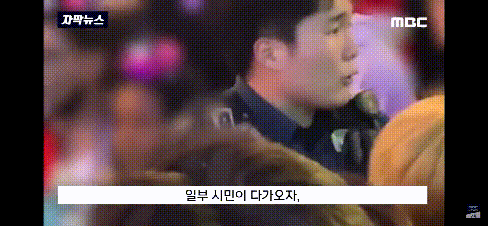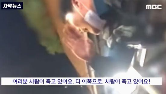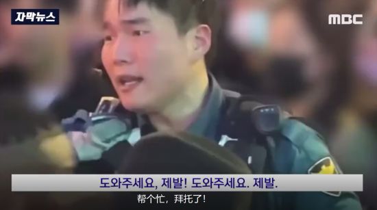 韓國警察孤身大喊疏散人群。(MBC電視臺)