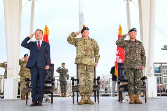當地時間15日,在平澤漢弗萊兵營舉行“韓美聯軍司令部部隊遷址及創建第44周年紀念儀式”。 圖自韓媒