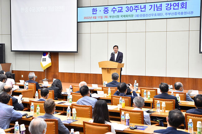 資料圖:8月11日中韓建交30周年紀念講座現場。釜山市供圖