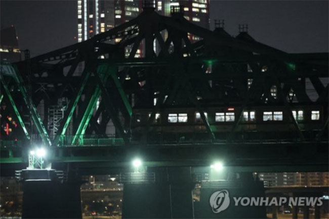 首爾地鐵發生故障停在漢江鐵橋上。(韓聯社)
