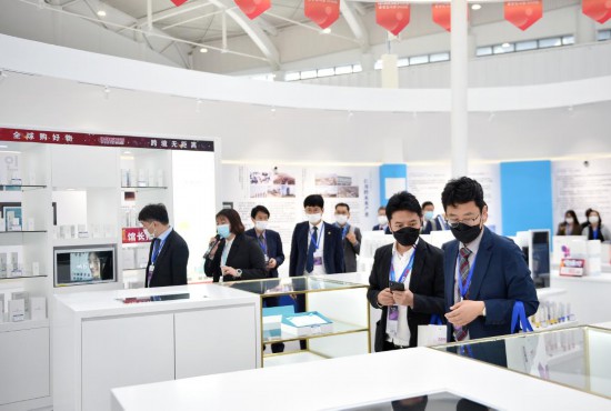 2021年9月23日,韓國客商在中韓(長春)國際合作示范區中韓城市館內參觀。(新華社記者林宏攝)