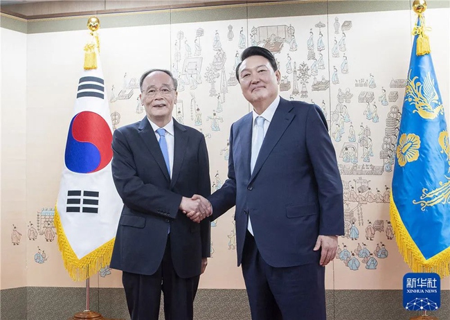 2022年5月10日,應韓國政府邀請,習近平主席特別代表、國家副主席王岐山在首爾出席韓新任總統尹錫悅就職儀式,并同尹錫悅總統會晤。雙方回顧并評價了中韓關系快速、高質發展歷史,并就推動中韓戰略合作伙伴關系與時俱進,不斷向更高水平邁進達成重要共識。