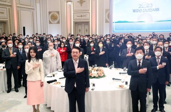 1月2日,尹錫悅在青瓦臺迎賓館主持召開新年問候會。 圖源:韓媒