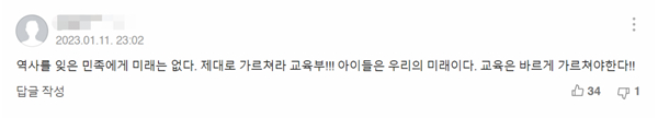 更有人對韓國教育部提出強烈批評:“忘記歷史的民族沒有未來!韓國教育部你給我好好搞教育。!孩子是我們國家的未來!”↓