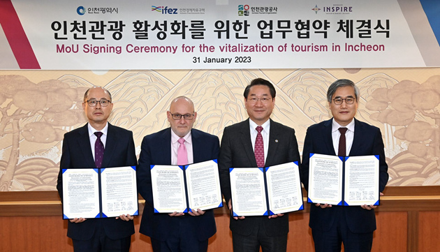 人民網首爾2月1日電 1月31日,韓國仁川廣域市與仁川經濟自由區域廳、仁川旅游發展局以及INSPIRE度假村股份有限公司(以下簡稱“INSPIRE公司”)簽訂業務合作協議,合作內容包括共同促進旅游業和MICE產業發展、引進大型活動、促就業以及培養旅游業人才等多個方面。