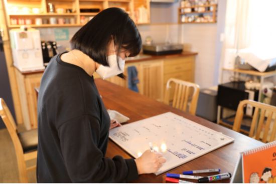 全羅北道完州郡青年空間負責人在記事板上填寫活動內容。