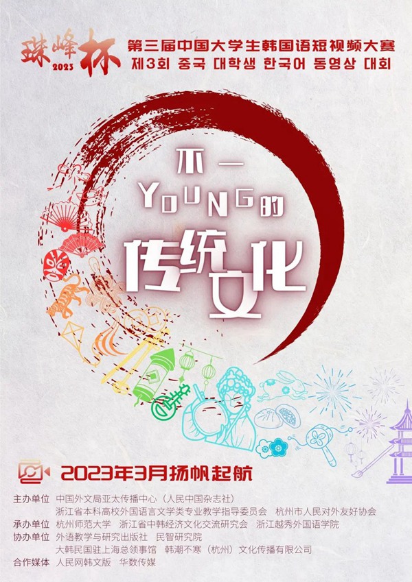 人民網訊 近日,由外文局亞太傳播中心、浙江省高校外語專業教學指導委員會、杭州市對外友協主辦的“珠峰杯第三屆中國大學生韓國語短視頻大賽”正式啟動。本次大賽主題為“不一‘young’的傳統文化”,參賽者將通過短視頻形式,用韓國語講述年輕人眼中的傳統文化,展示當代中韓文化交流新風采。