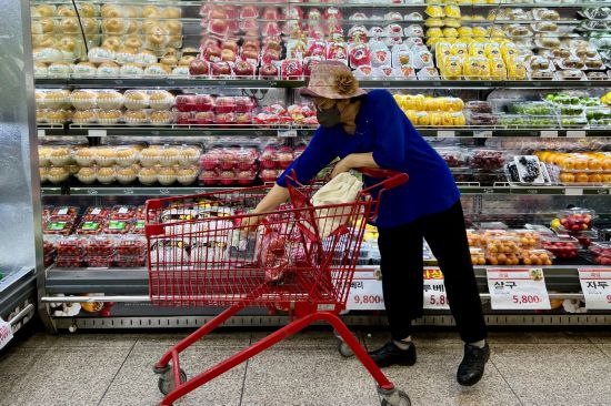 2022年7月5日,韓國首爾市民在一家超市購物。新華社記者王益亮攝