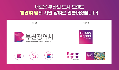 釜山城市標志選定為釜山英文首字母“B”和“S”三維立體字,體現人工智能形象;品牌口號則以韓英雙語形式推出,中文意思為“釜山真好”。