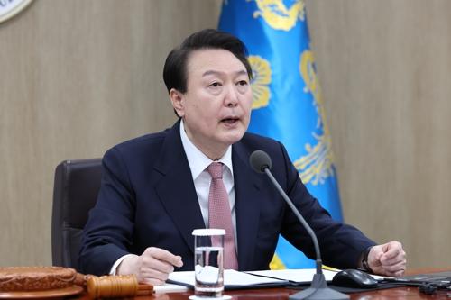 3月21日,韓國總統尹錫悅在首爾龍山總統辦公室主持國務會議,就韓日關系正;葐栴}發表講話。圖源:韓聯社
