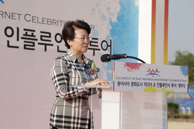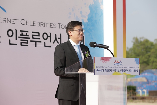 人民網韓國慶州4月21日電(曹翔宇)4月20日,“東亞文化之都”媒體及網絡名人行啟動儀式在韓國慶州舉行。中日韓合作秘書處秘書長歐渤芊、慶州市長朱洛榮、中國駐釜山總領事陳日彪、日本駐釜山副總領事栗田伸一、慶州市議會議長李哲雨、韓國東亞文化中心院長盧載憲以及14位參加本次活動的中日韓媒體、網絡名人出席。
