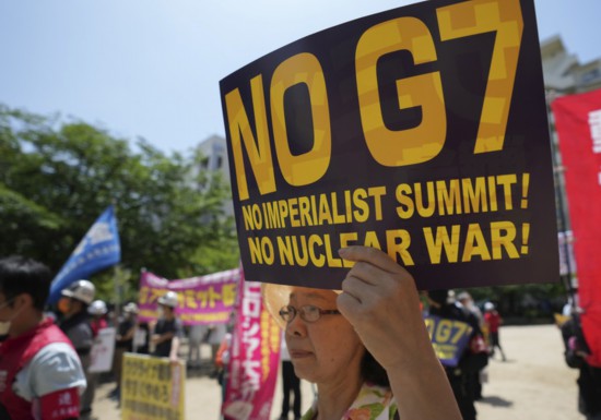 5月21日,民眾聚集在日本廣島袋町公園,抗議七國集團峰會。新華社記者張笑宇攝