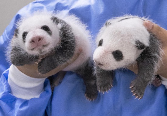 韓國紐西斯通訊社表示,雙胞胎幼崽的眼部已經出現明顯的黑色花紋,像戴了墨鏡一樣。報道還說,兩只寶寶的體重,分別從180克和140克增至1.1公斤和1.2公斤,可謂“暴風成長”。
