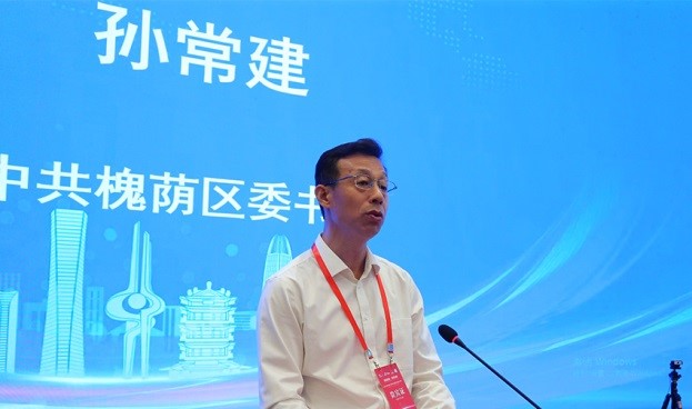槐蔭區委書記孫常建在開幕式濟南會場上發表致辭。濟南市槐蔭區供圖。