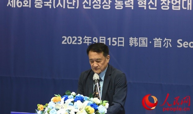 人民網首爾9月15日電(李帆)9月15日,第六屆中國(濟南)新動能創新創業大賽亞洲賽區(韓國)預賽在首爾以線上線下相結合的方式成功舉行。本次大賽亞洲賽區預賽由濟南市槐蔭區主辦。濟南市人力資源和社會保障局黨組成員、副局長、市委人才辦副主任張維國,槐蔭區委書記孫常建,區委副書記、區長劉敬濤,首爾科學綜合大學院大學未來發展委員會委員長趙東成,中國駐韓國大使館科技參贊張楠等嘉賓以及來自海內外的技術、投資、法律等領域的專家評委出席了大賽開幕式。