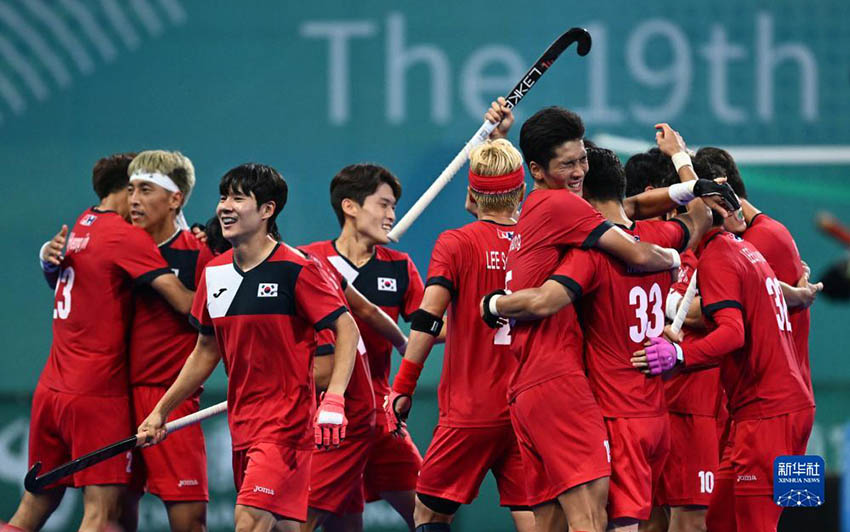 10月6日,在杭州亞運會曲棍球項目男子三、四名決賽中,韓國隊以2比1戰勝中國隊,獲得銅牌。