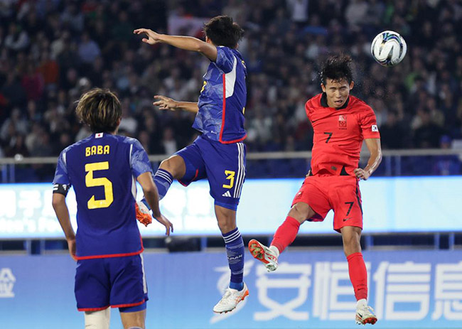 易邊再戰,韓國隊由李剛仁、鄭優營、曹永旭組成的進攻“三叉戟”輪番沖擊日本隊后防線。第56分鐘,“三叉戟”進攻收到效果,曹永旭在禁區內得球后靈巧躲過對手的放鏟,趕在日本隊門將破壞之前,將球推進球網,韓國隊反超比分。