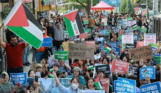 【環球網報道 見習記者 姜藹玲】韓聯社16日報道稱,居住在韓國的巴勒斯坦青年和支持他們的韓國市民團體15日下午在首爾梨泰院附近舉行集會,他們手持標語牌,上面寫著“反對以色列投入地面部隊”“以色列停止轟炸加沙地區”等字樣,同時喊著相同內容的口號,要求以色列停止對巴勒斯坦的侵略。