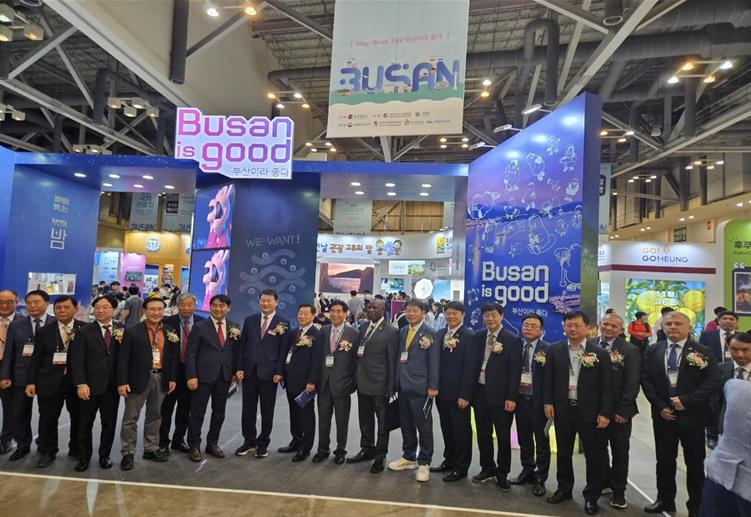 第24屆釜山國際旅游展開幕式現場嘉賓合影留念。釜山市供圖