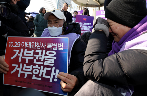 另據《韓民族日報》同天另一篇報道稱,當得知尹錫悅行使否決權后,梨泰院遇難者遺屬協會發表聲明并譴責稱,“尹錫悅總統和政府官員、國民力量黨議員們因自己的不負責任和愚蠢決定犯下了被載入史冊的罪過!