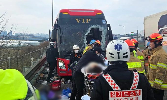 海外網2月26日電 據韓聯社報道,2月25日下午,韓國京釜高速公路京畿道安城市路段發生交通事故,一輛旅游大巴被輪胎砸中,致2死13傷。
