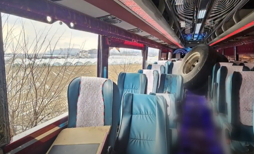 輪胎出現在旅游大巴車內(韓國YTN電視臺截圖)