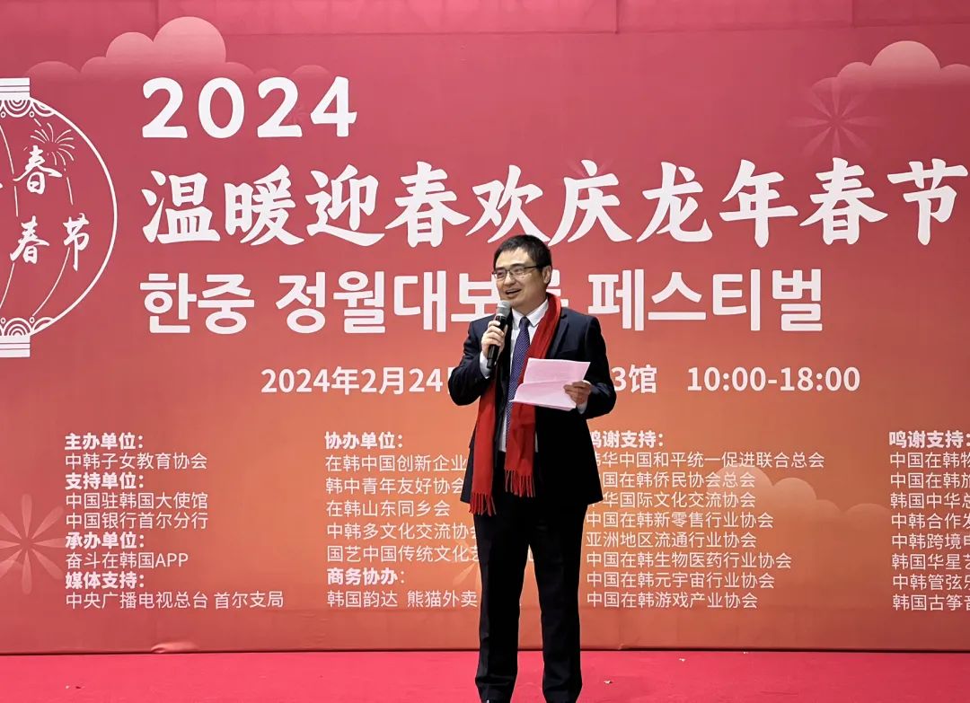 人民網首爾2月25日電 2月24日是正月十五元宵節,“2024溫暖迎春·歡慶龍年春節廟會”當日在韓國首爾成功舉辦。中國駐韓國大使館臨時代辦方坤出席開幕式并致辭。