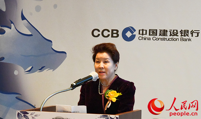 建行首爾分行總經理王玉潔致辭。人民網 李帆攝