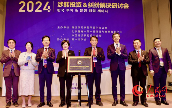 人民網首爾4月1日電(李帆)3月29日,涉韓投資及糾紛解決研討會暨中日韓商事調解中心首爾聯絡處揭牌儀式在首爾順利舉行。中國駐韓國大使館經濟商務處參贊冉德艷、中日韓合作秘書處副秘書長顏亮、中日韓國際商事調解中心主任王麗等中韓兩國相關政府人士、國際組織、法律專家、商界代表、文化界代表等近二百人受邀出席了當天的活動。