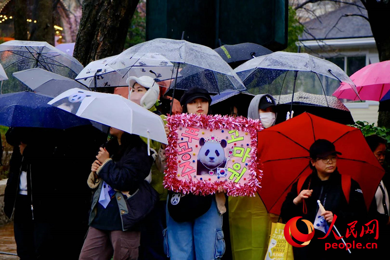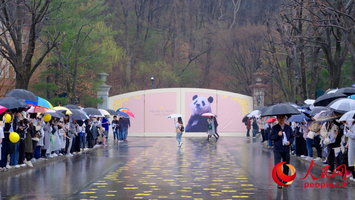 4月3日,韓國當地下起小雨,但粉絲仍然熱情不減,清晨已有很多粉絲前來排隊為福寶送行。最早到達愛寶樂園的粉絲向記者表示,為參加“福寶”的送別儀式,凌晨4點起床,5點就到了現場。即使下雨,也絲毫未影響到粉絲們對“福寶”的熱情。