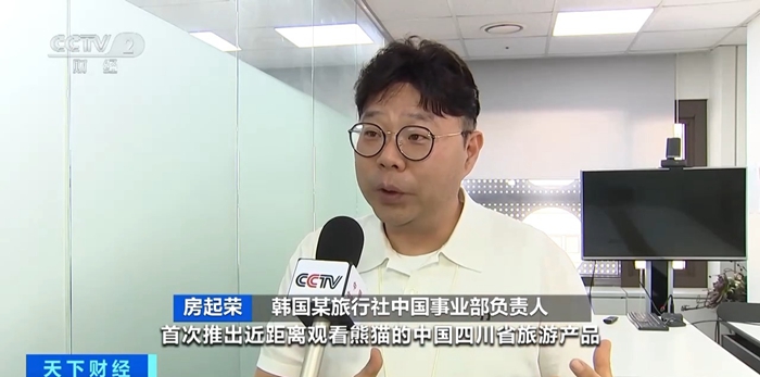 韓國某旅行社中國事業部負責人 房起榮:首次推出近距離觀看熊貓的中國四川省旅游產品,“熊貓游”套餐上線已過一個月,有800名顧客預約,與其他中國旅游產品相比,一個月內銷量增長了200%。
