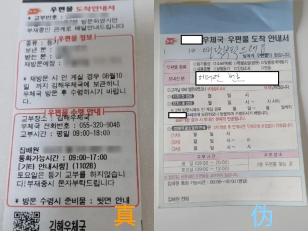 據韓國警察廳公告,近日韓國出現利用掛號信的新型電信詐騙形式“Letter Phishing”。詐騙分子用偽造的掛號信郵單誘導受害者通話,謊稱郵政或執法機構索要個人信息實施詐騙。