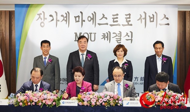當日,在邢海明、韓國國會議員禹相虎、林五卿等嘉賓的見證下,建行首爾分行、南方航空韓國營銷中心、湖南華天酒店集團與韓國華青集團舉行了“張家界匠心服務”一體化合作協議簽約儀式。