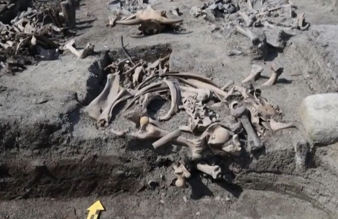 上述牛骨,是在深約1米的豎穴內發現的,推測至少有七八頭牛被埋葬。韓國考古專家表示,在一個地方發現如此大量的牛骨很少見,這是一個特例。