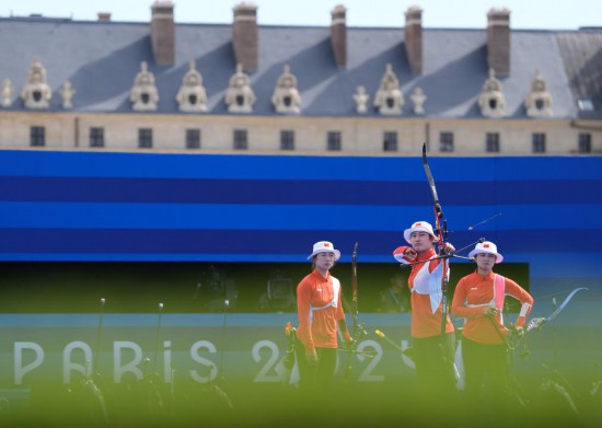 巴黎奧運會射箭女子團體比賽28日在榮軍院進行。中國隊在四分之一決賽、半決賽中分別戰勝印度尼西亞隊和墨西哥隊,與先后戰勝中國臺北、荷蘭隊的韓國隊會師決賽。