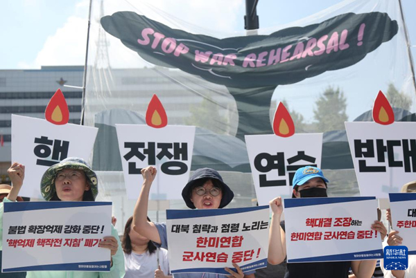 新華社首爾8月19日電(記者馮亞松)19日上午,“和平統一開創者”“朝鮮半島和平行動”等韓國民間團體在首爾龍山總統府前舉行抗議集會,要求立即停止韓美軍隊當天啟動的聯合軍事演習。